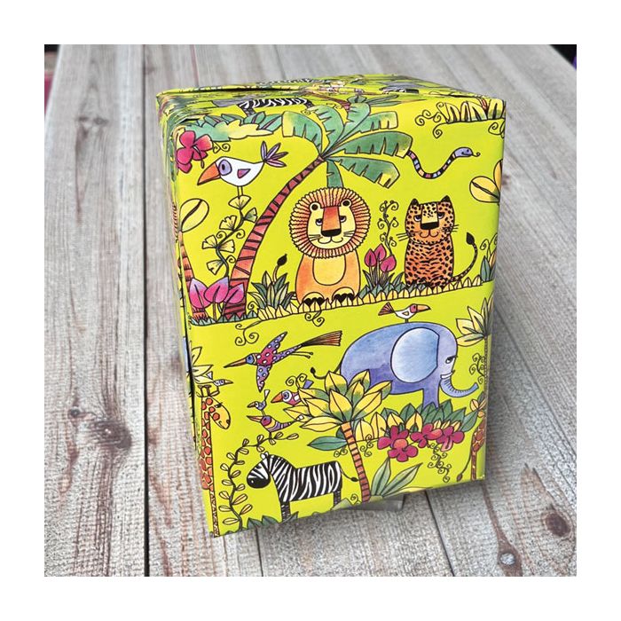 | Pakk inn gavene dine i et festlig gavepapir med fargerike mønstre av Afrikas majestetiske dyr. Dyremotiver som skaper glede og eventyr. Lime grunnfarge på hvitt coated papir. 80 g. Mål: Bredde 57 cm x 150 m. Se også gaveposer i farger | Normalpris