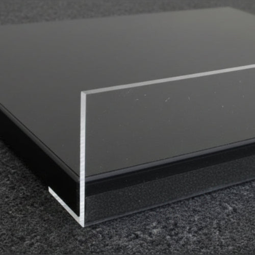 Melaminhylle svart, skrå, med forkant i svart, 91 x 37 cm