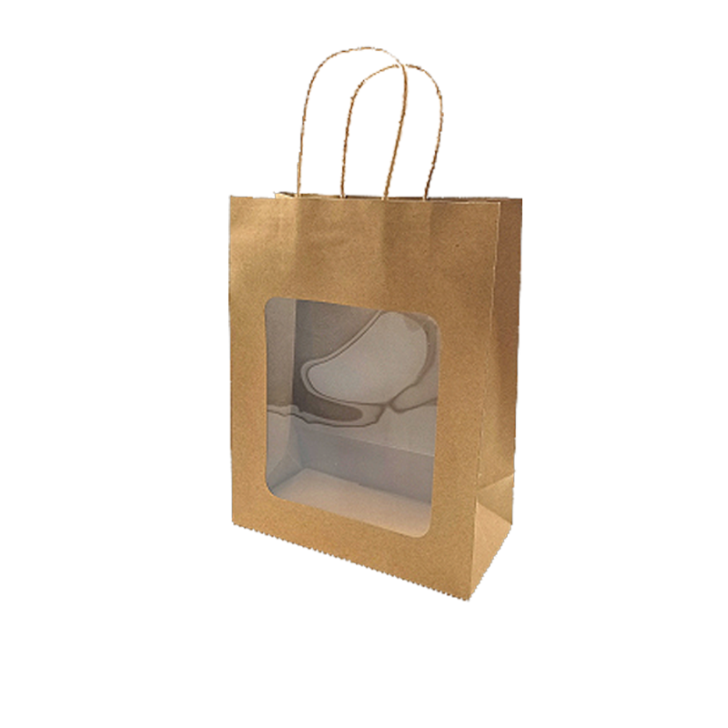 Papirpose. H 27,5 cm. M/ vindu. Gavepose - natur. 20 stk.