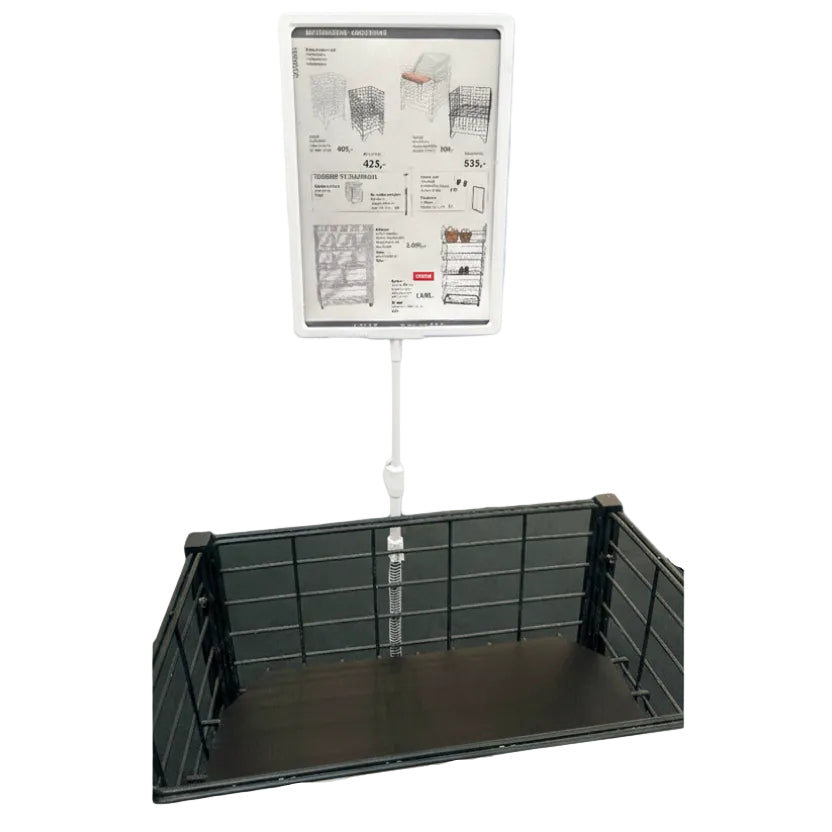 Skilt-holder, A4, med fjær til tråd, plast, hvit