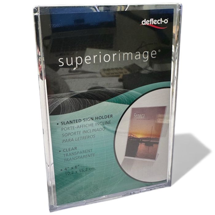 Skiltholder, A6 høy, skrå, akryl, 10 x 15 cm
