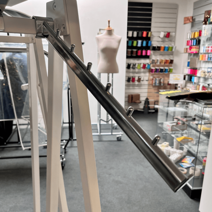 *Tilbud* skrå frontheng, med 7 knoppar, til oval. Dekostang (12 mm) Krom, 36 cm Passer med ovalrør 15x30 mm. Kan settes på 12 mm firkantet stang (SuperSellerS f.eks. Dekostang)
